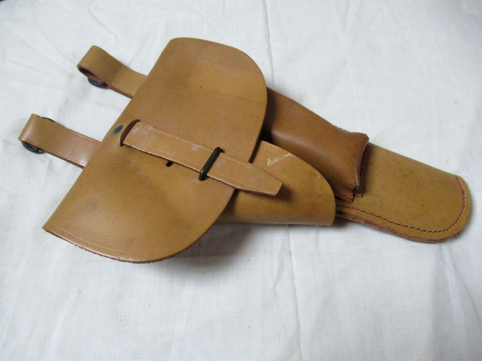 Vintage 1960s French army tan leather pistol holster M47 brown military